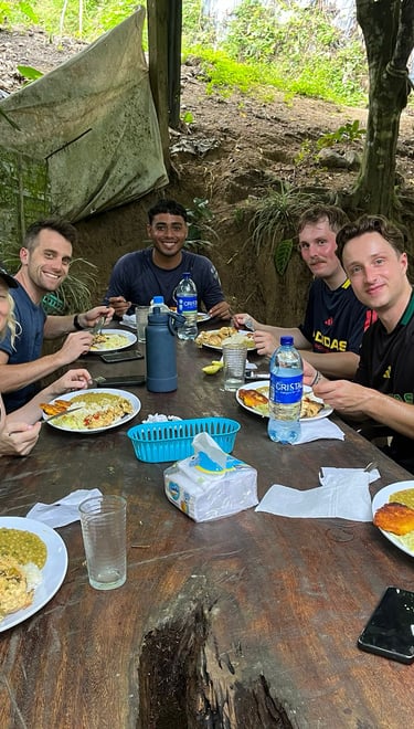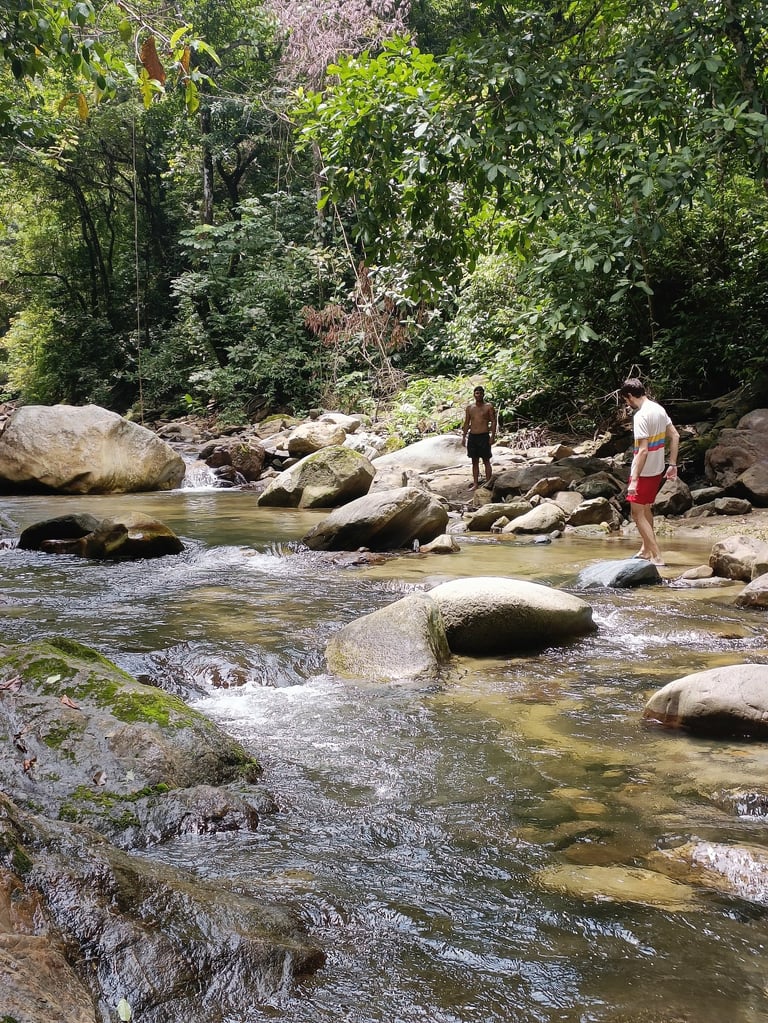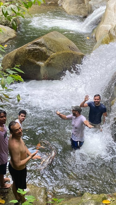 Après une balade douce au milieu d’une nature luxuriante, place à un moment de partage : un déjeuner typique préparé avec des produits frais et surtout, beaucoup d’amour. Ici, tout se fait dans la bonne humeur et la simplicité — comme à la maison. L’après-midi se poursuit entre rivières, cascades et baignades rafraîchissantes. Pas besoin d’être un grand marcheur : on avance tranquillement, on profite de l’eau claire, du chant des oiseaux, et de la paix qu’offre la montagne. C’est une parenthèse de détente et de convivialité, un concentré de nature et de plaisir en une seule journée — parfaite si tu es de passage à Santa Marta et que tu veux vivre une expérience authentique, simple et inoubliable.
